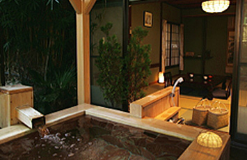 やぐら造りの豪華檜露天風呂です。なつかしい檜の薫りと和風プチ庭園がやわらかく贅沢に旅気分を演出してくれます。ごゆっくりどうぞ。